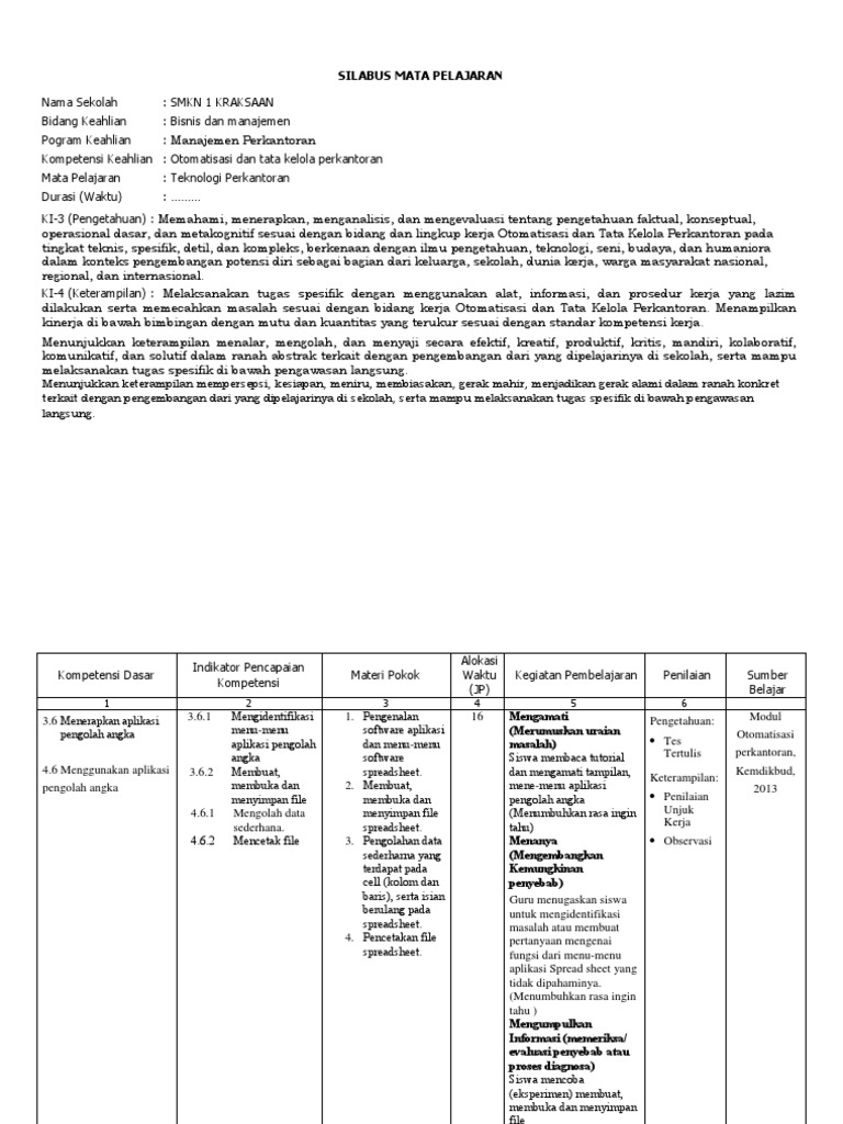 Doc Silabus Teknologi Perkantoran Arma Setyo Nugrahani Academia Edu from 0.academia-photos.com Perangkat pembelajaran merdeka belajar sederhana efisien, efektif dan berorientasi revisi 2020 Silabus mata pelajaran teknologi perkantoran yang sebelumnya mata pelajaran ini bernama otomatisasi perkantoran merupakan mapel dari ki/kd teknologi perkantoran kurikulum 2013 edisi revisi tahun 2017 yang resmi terbit pada tanggal 9 juni 2017 dan di tandatangani oleh direktur jendral pendidikan dasar dan menengah kemdikbud dengan nomor : Download silabus ktsp smk jurusan administrasi perkantoran. Silabus pemeliharaan mesin kendaraan ringan kelas xii smk kurikulum 2013 revisi 2017 ; Silabus administrasi umum kelas x smk kurikulum 2013 revisi 2017 bidang keahlian bisnis dan manajemen ini disusun untuk melengkapi kebutuhan guru dalam melengkap administrasi sekolah atau menunjang pelaksanaan kurikulum 2013 revisi tahun 2017. Jual teknologi perkantoran c2 smk kls x k13 kikd2018 endang. Kursus komputeradministrasi perkantoran akuntansi silabus umum 1 pengaturan akun 2 data akun 3 saldo awal akun 4 data produk 5 data relasi 6 komputer. Silabus mata pelajaran tehnologi perkantoran kelas x untuk smk.